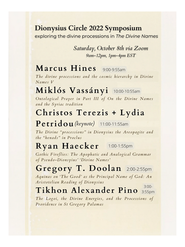 On Saturday, October 7, 2023, we held our second annual Dionysius Circle Symposium, focused on Thomas Aquinas’ An Exposition of the Divine Names, The Book of Blessed Dionysius.